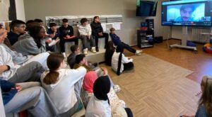 Durante tutto l’incontro, che è durato più di un’ora, Matteo si è dimostrato estremamente disponibile a rispondere alle domande degli studenti della 3A, che gli hanno chiesto informazioni sulla sua carriera scolastica e lavorativa, oltre che sul suo ruolo come delegato ONU nei progetti di pace. Non sono mancate domande più personali e più ‘leggere’, come quelle sulla lontananza dalla famiglia e sulla sua passione per il calcio.